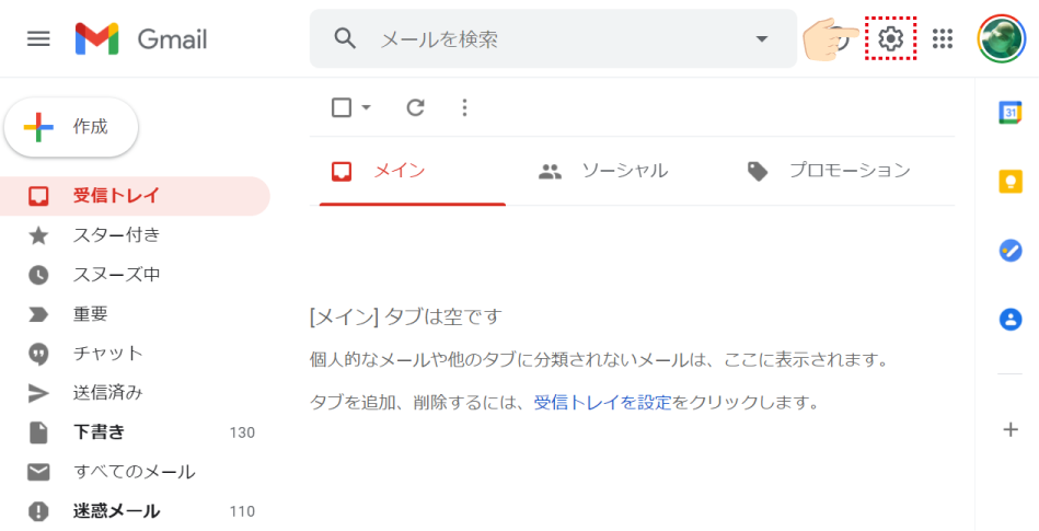 この画面が表示されたら、「この画面を消さないで」現在操作しているGmailの受信トレイを確認してください。