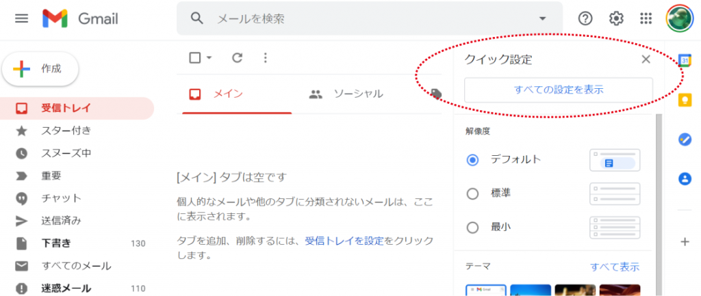 クイック設定が表示されたら、【すべての設定を表示】ボタンを押す。