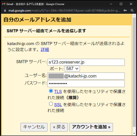 ユーザー名: (発行した形メールアカウント)@katachi-jp.com