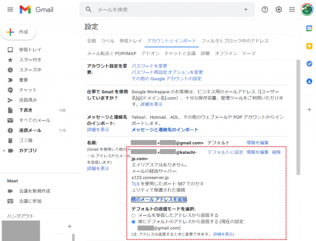 メールの経由サーバー「s123.coreserver.jp」であることを確認してください。
