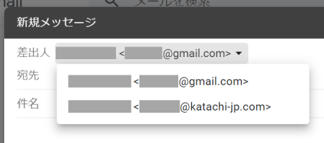 Gmailは、形メール(◯◯◯◯◯◯@katachi-jp.com)の送信機能を持っています。